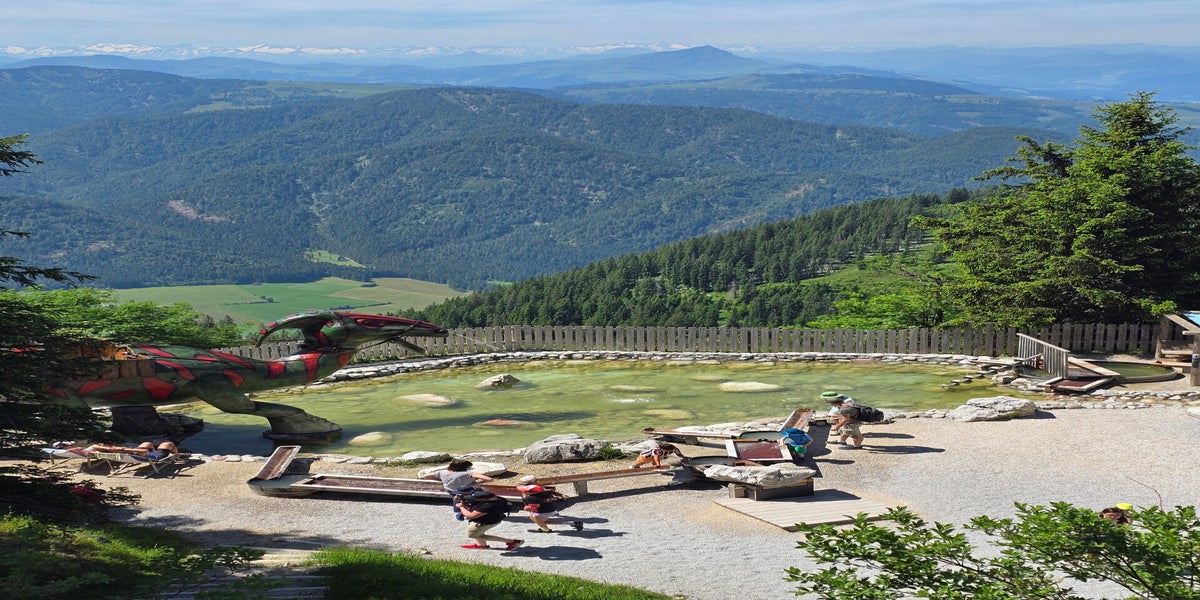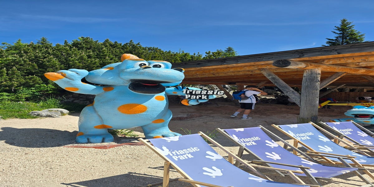 Zuerst geht es 10 Minuten um die Bergstation hoch in das Triassic Center. Hier gibt es Informationen zur Urzeit, der Trias und mehr. Nach dem Shop können Kinder im Forscherlabor erforschen und untersuchen. Dann geht es raus die Urzeit. Das gesamte Gelände ist wie zur Zeit der Dinosaurier gestaltet. Wasserspielplatz und große Dinos warten darauf erkundet zu werden.